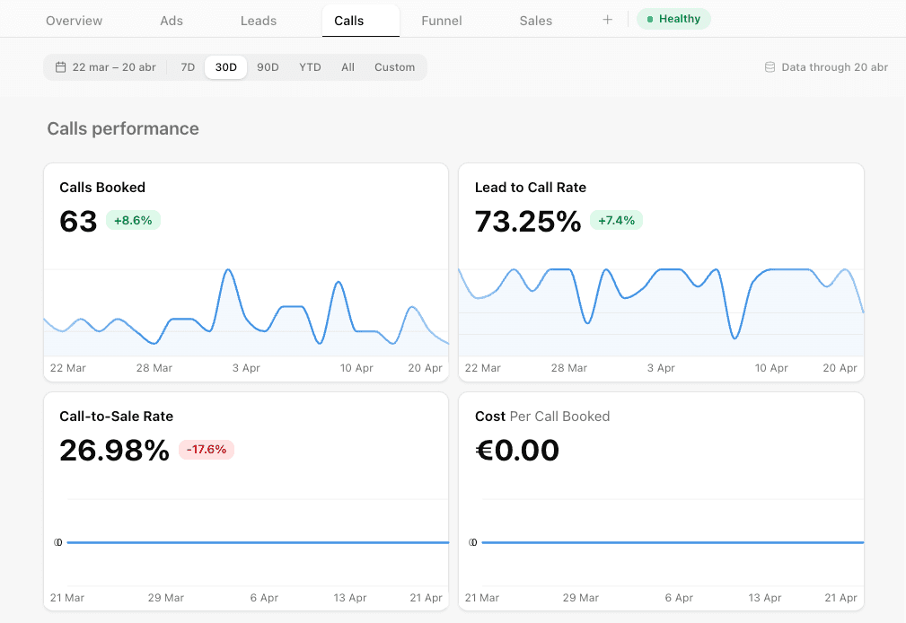 Calls Booked: total de llamadas agendadas registradas por Calendly.